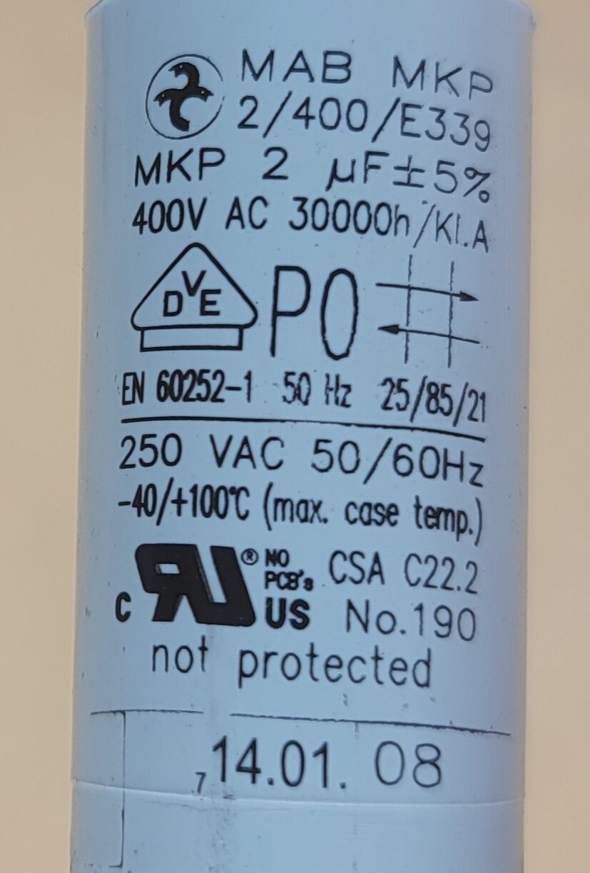 USED Genuine Double Oven Viking Capacitor Part#2/400/E339 EN60252-1