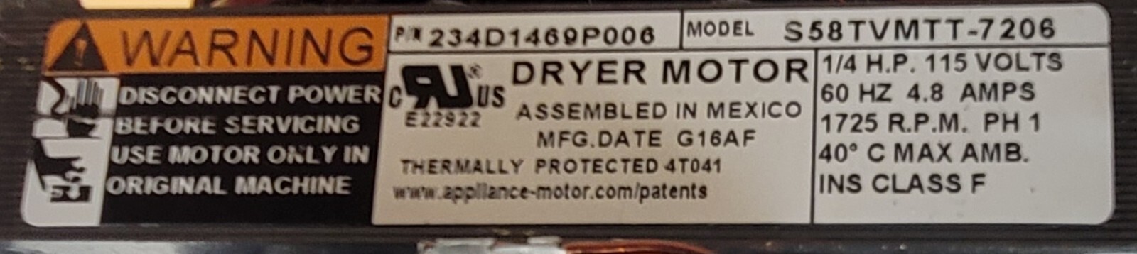 USED Genuine Dryer GE Motor w/Blower Part#234D1469P006