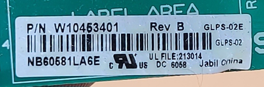 USED Genuine Refrigerator Whirlpool Control Board Part#W10453401