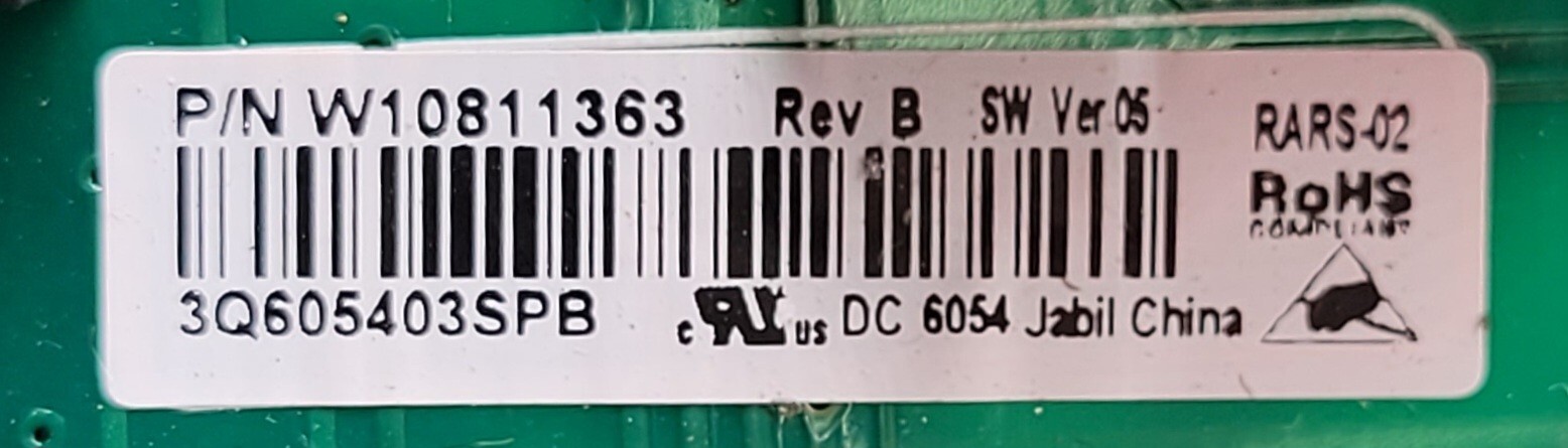 USED Genuine Refrigerator Whirlpool Control Board Part#W10811363