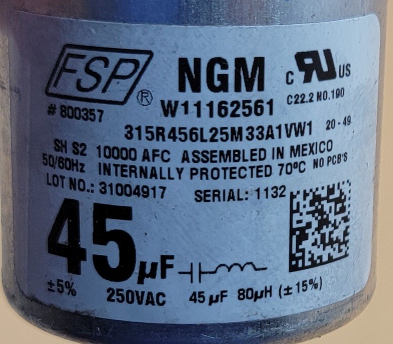 USED Genuine Washer Amana Capacitor Part#W11162561