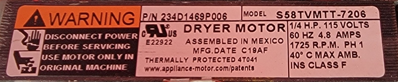 USED Genuine Washer/Dryer GE Drive Motor w/Blower Part#234D1469P006
