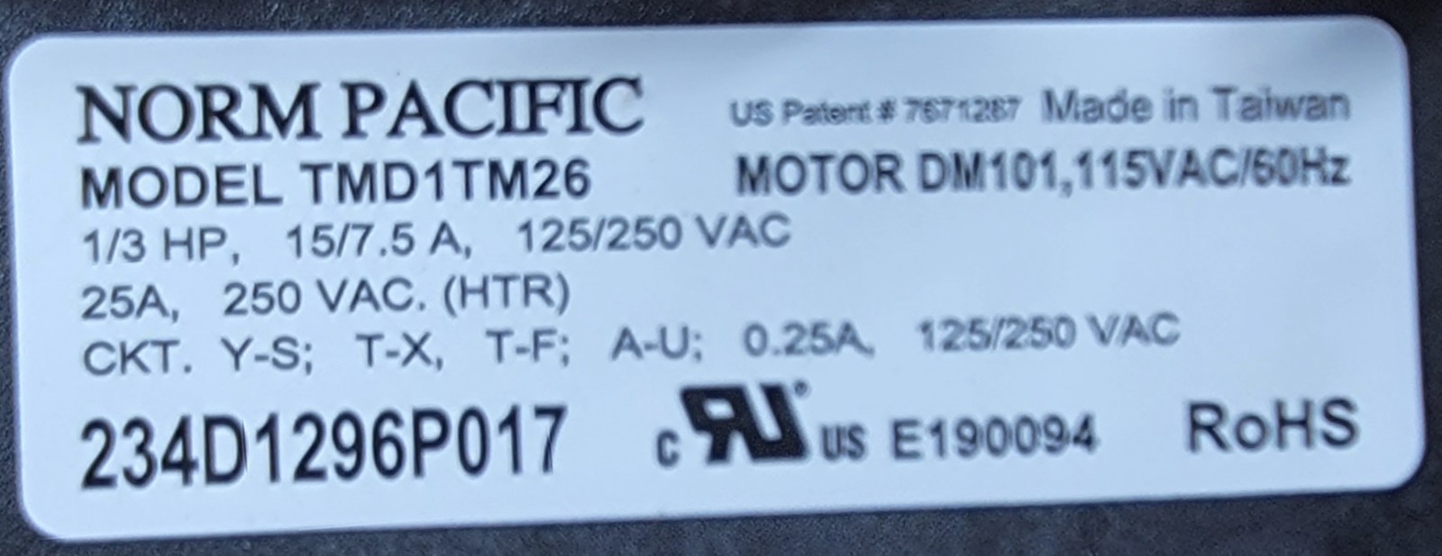 USED Genuine Washer/Dryer GE Timer Part#234D1296P017