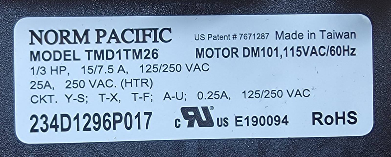 USED Genuine Washer/Dryer GE Timer Part#234D1296P017